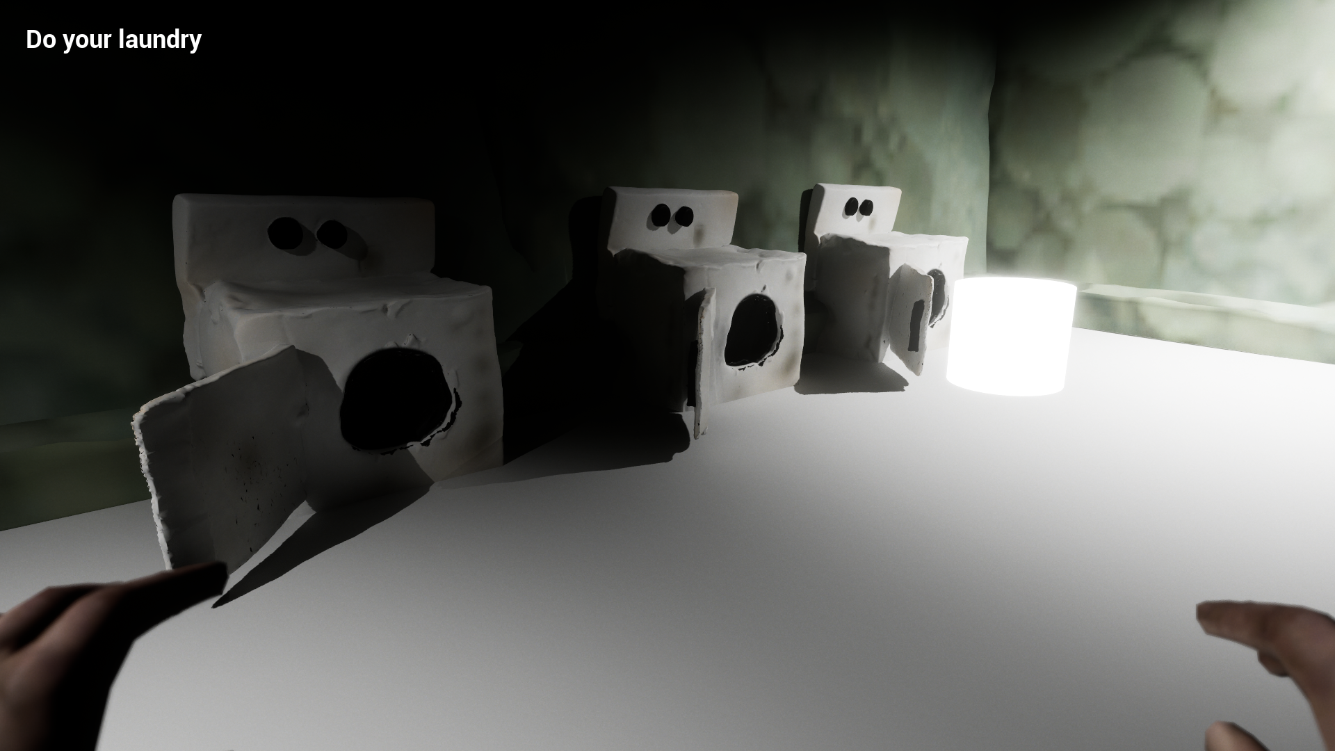You start in your room in an apartment building, then go to do laundry. Something happens, which causes the player to go and explore the other rooms. Here what you can find in those rooms: mazes, platforms to jump on, and interactive encounters with your neighbors. Exploring all the rooms will reveal the person who ruined your clothes.